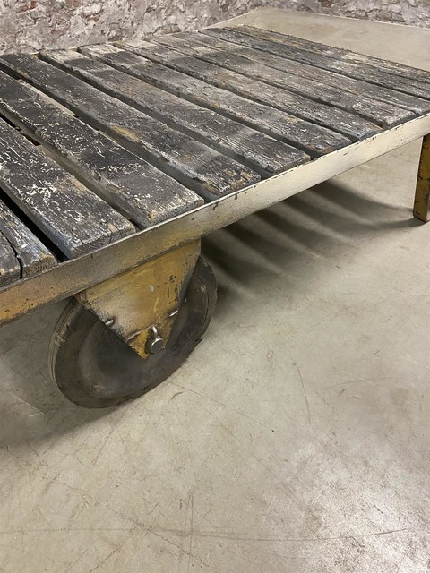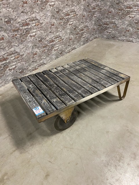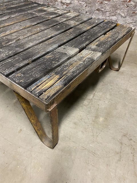 style Industrial retro vintage decoration table in wood/metal, European, in original condition for sale in Industrial and vintage, Furniture | STEEN ANTIEK Almelo Holland | World wide shipping | Import & Export | Wholesale European Antique Furniture & Decoration | Free container packing