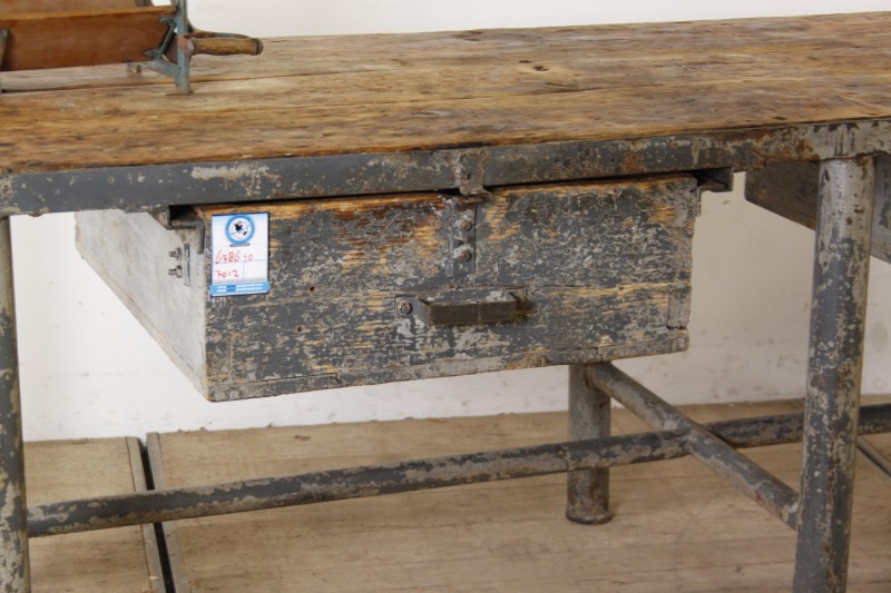1 Industrial- vintage- antigue pine- decorations style Industrial vintage workbench/sidetable in Wood/metal, european 1960, in original condition for sale in 01 Industrial and vintage, Furniture | STEEN ANTIEK Almelo Holland | World wide shipping | Import & Export | Wholesale European Antique Furniture & Decoration | Free container packing