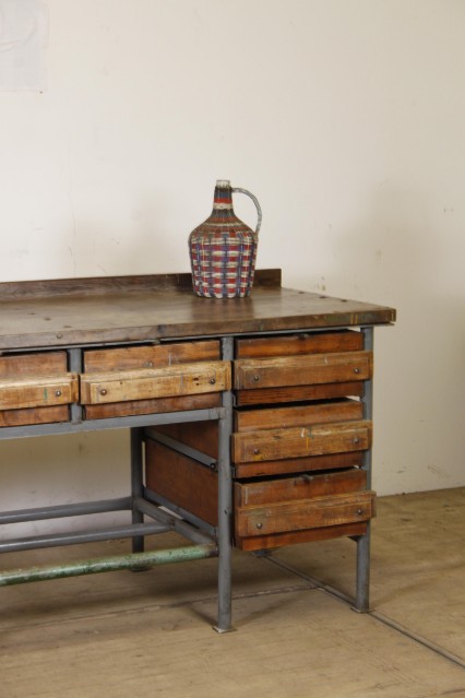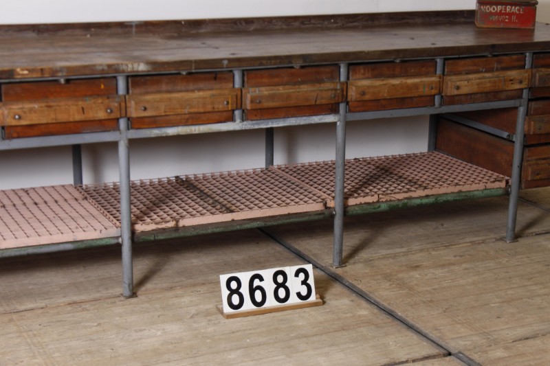 1 Industrial- vintage- antigue pine- decorations style Industrial vintage workbench/sidetable in Wood/metal, european 1960, in original condition for sale in 01 Industrial and vintage, Furniture | STEEN ANTIEK Almelo Holland | World wide shipping | Import & Export | Wholesale European Antique Furniture & Decoration | Free container packing